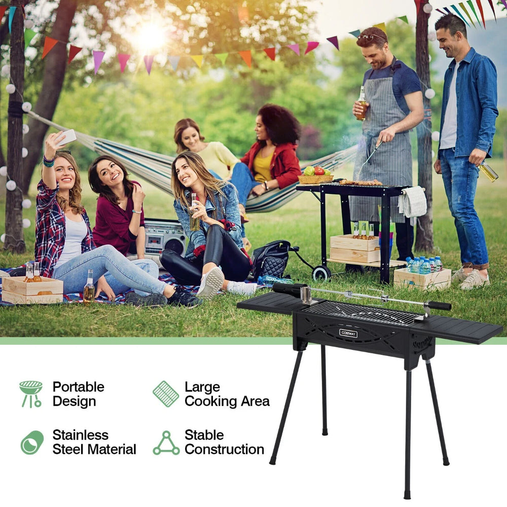 Portable Charcoal Grill with Electric Roasting Fork-Black
