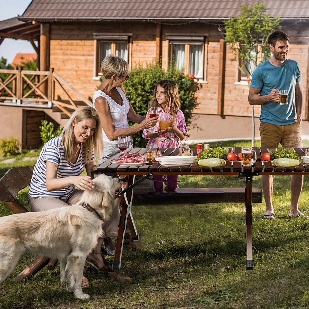 Folding Bamboo Camping Table with Carry Bag for BBQ & Party & Picnic & Hike-Coffee