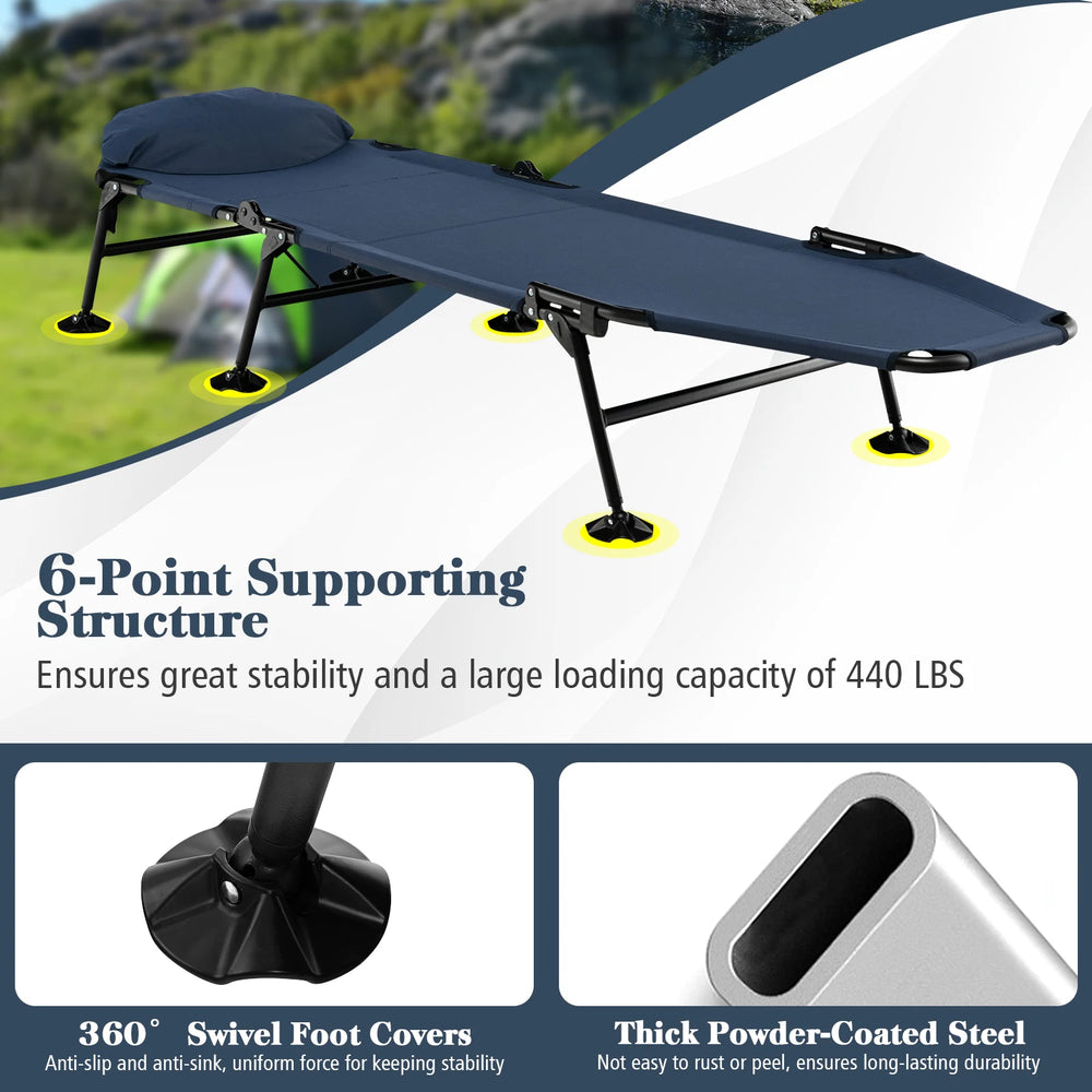 Folding Camping Cot with Detachable Mattress and Adjustable Backrest-Navy
