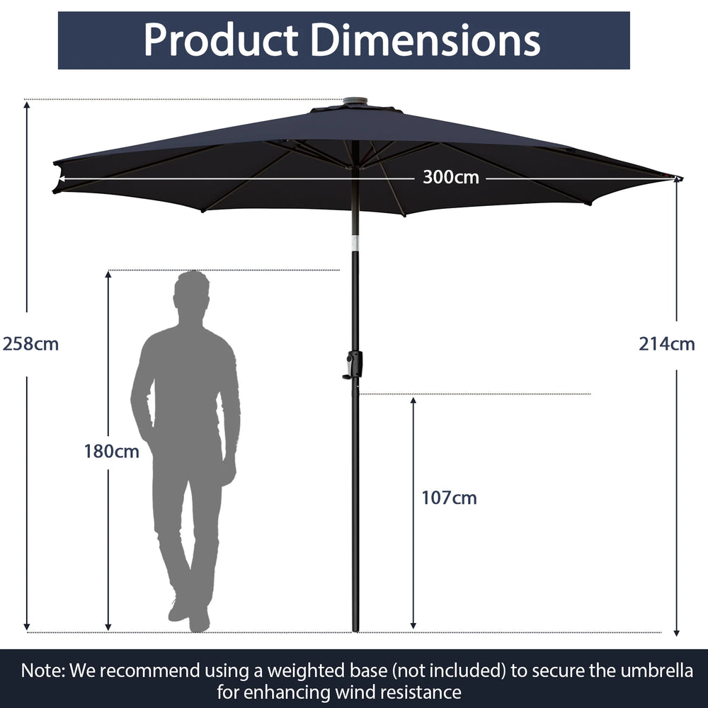 10 Feet Patio Umbrella with 112 Solar Lights and Crank Handle-Navy