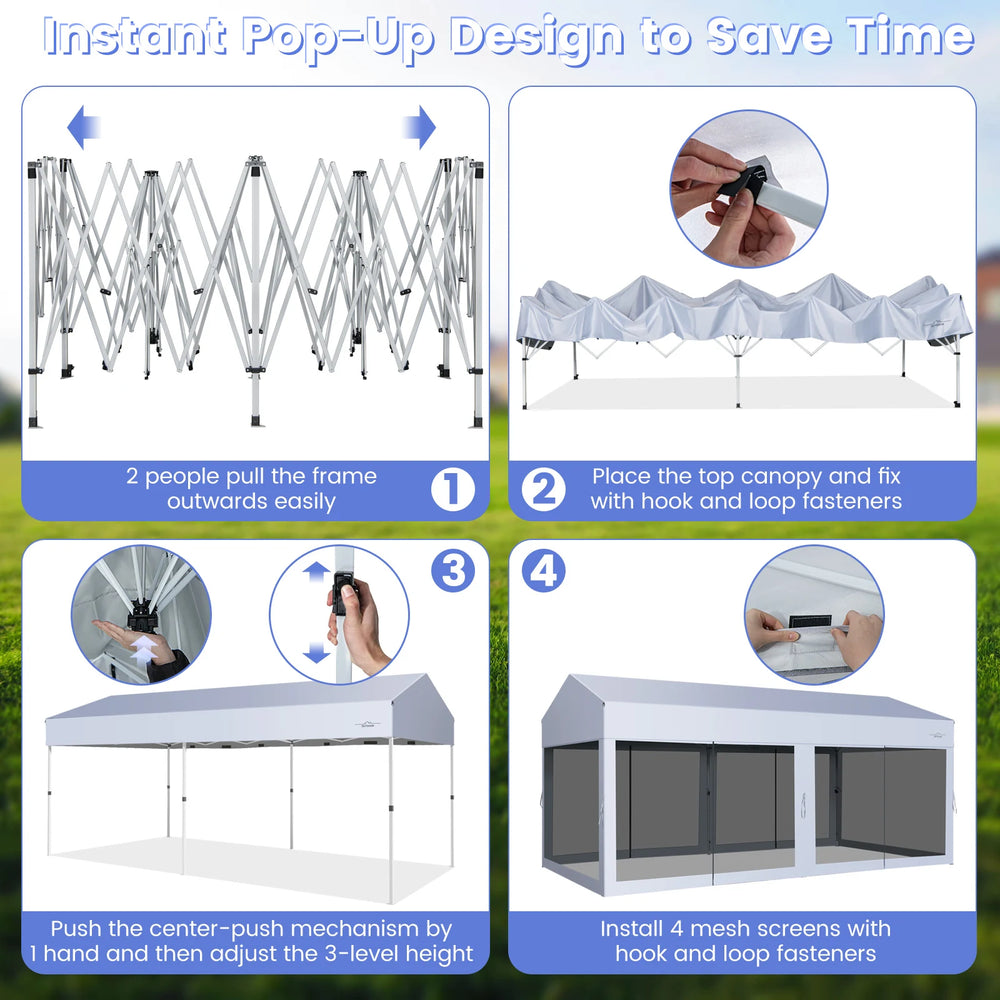 10 x 20 Feet Pop up Canopy Tent with Removable Sidewalls for Party-White