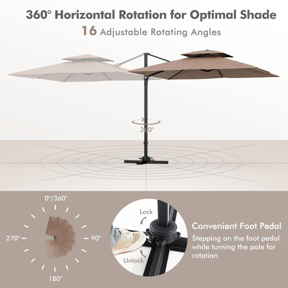 9.5 Feet Cantilever Patio Umbrella with 360 Rotation and Double Top-Coffee