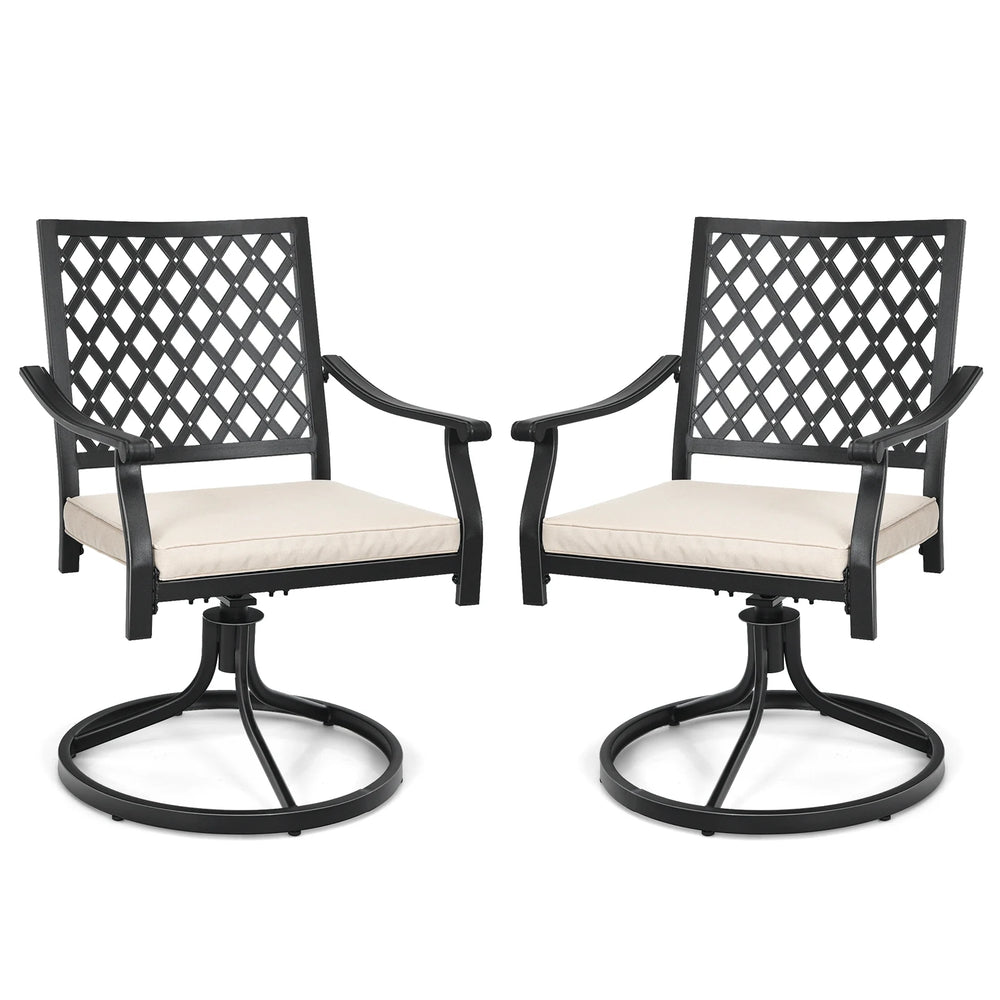 2 Pieces Patio 360 Swivel Dining Chairs with Rocker and Cushioned Armrest-Beige