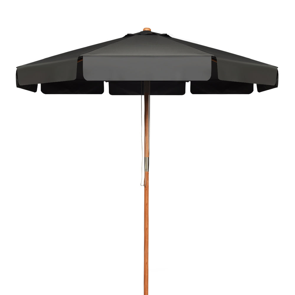 Color: GrayMaterial: 180G PA-Coated Polyester Fabric, Beech Wood, Zinc AlloyOverall Dimension: 300 x 300 x 261 cm (L x W x H)Height of Canopy: 210 cmDiameter of Umbrella Pole: 47 mmSpacing of Adjacent Card Positions: 4 cmSuitable Diameter of Umbrella Hole: 48 mmNet Weight: 10.5 kg Package Includes:1 x Patio Umbrella1 x User Guide