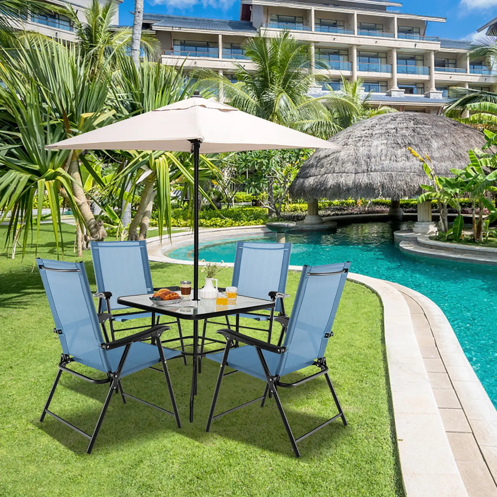 Set of 4 Folding Garden Chairs in Breathable Textilene Camping Chairs with Safety Lock and High Backrest Blue is backordered and will ship as soon as it is back in stock.