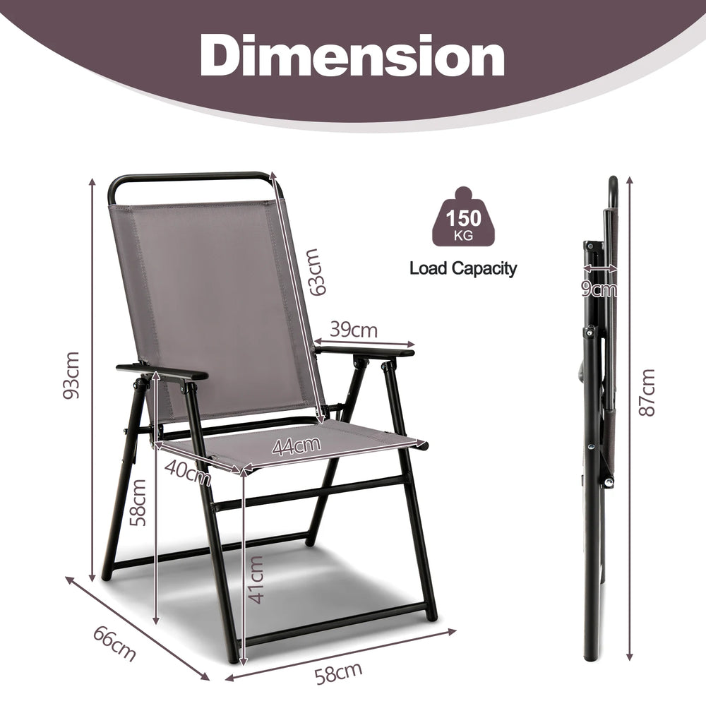 Set of 2 Outdoor Folding Sling Chairs with Armrest and Backrest-Gray
