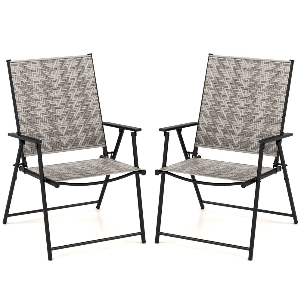Set of 2 Patio Folding Chairs with Armrests-Grey