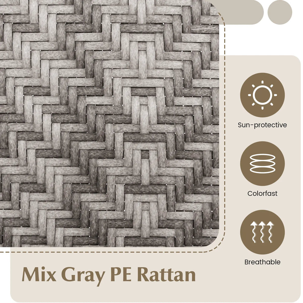 Color of Rattan: Mix Gray Color of Frame: Black Material: PE Rattan, Metal Unfolding Dimension: 66 x 60 x 89 cm (L x W x H) Folding Dimension: 60 x 17 x 82 cm (L x W x H) Seat Height from the Ground: 43 cm Size of Seat: 47 x 40 cm (L x W) Net Weight of Each Chair: 4.5 kg Weight Capacity of Each Chair: 160 kg Package Includes: 2 x Chairs