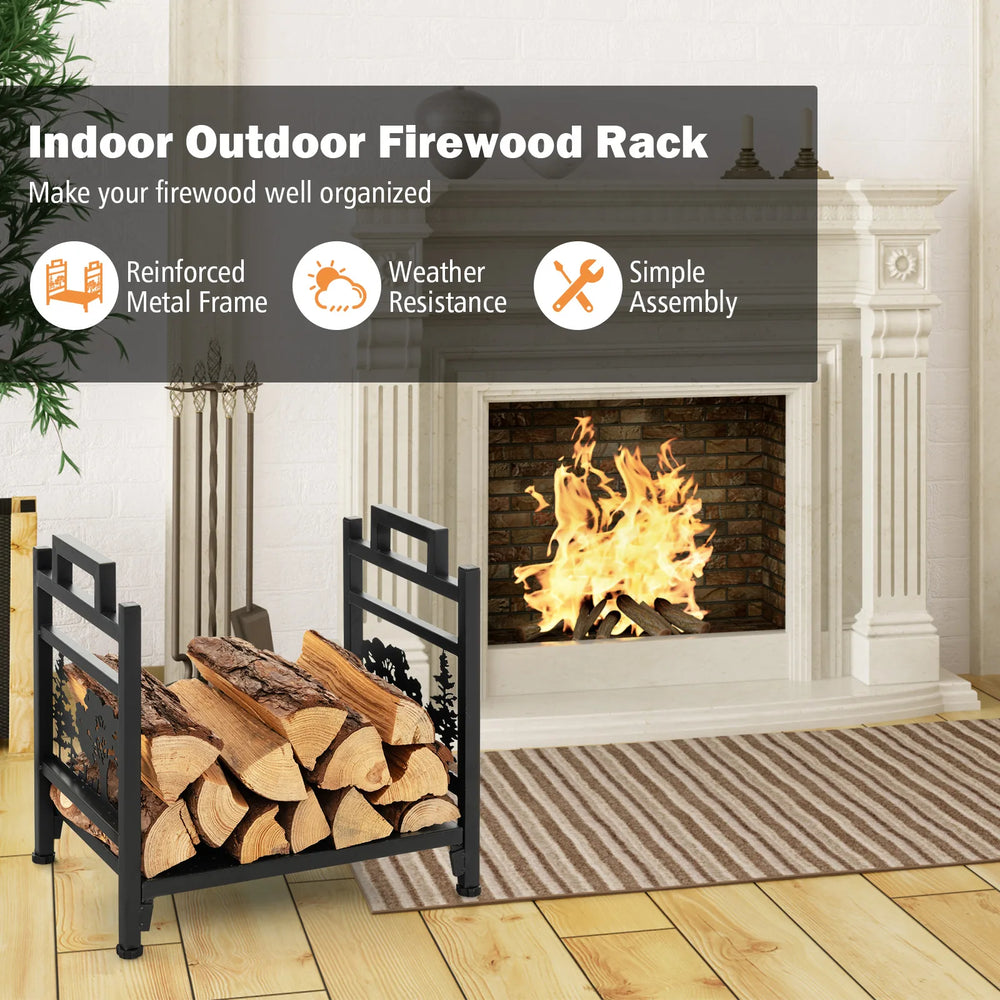 Decorative Firewood Rack with Side Handles and Adjustable Footpads