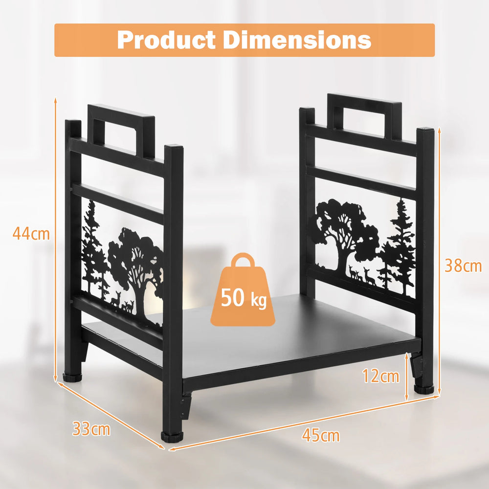 Colour: Black Material: Metal Overall dimension: 45 x 33 x 44 cm (L x W x H) Net weight: 3 kg Weight capacity: 50 kg Package includes: 1 x Firewood rack 1 x Instruction manual