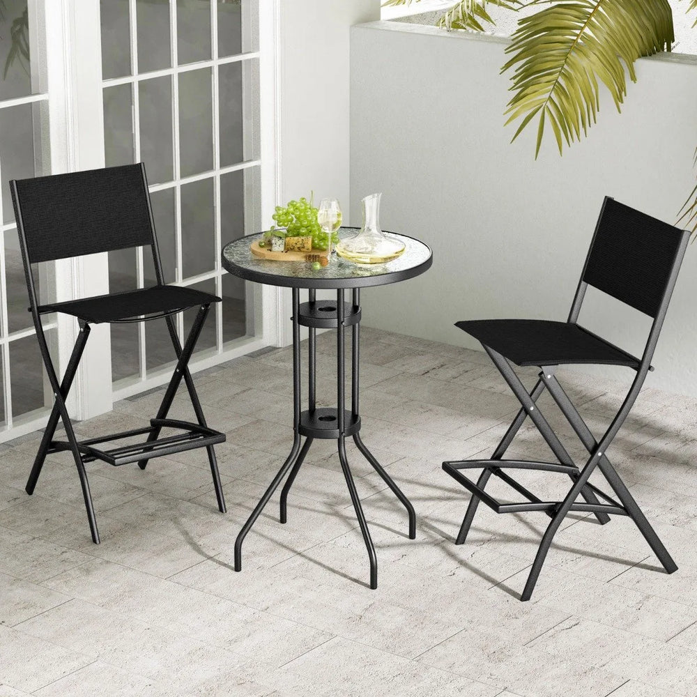 Outdoor Folding Bar Height Stool Set of 4 with Metal Frame and Footrest-Black