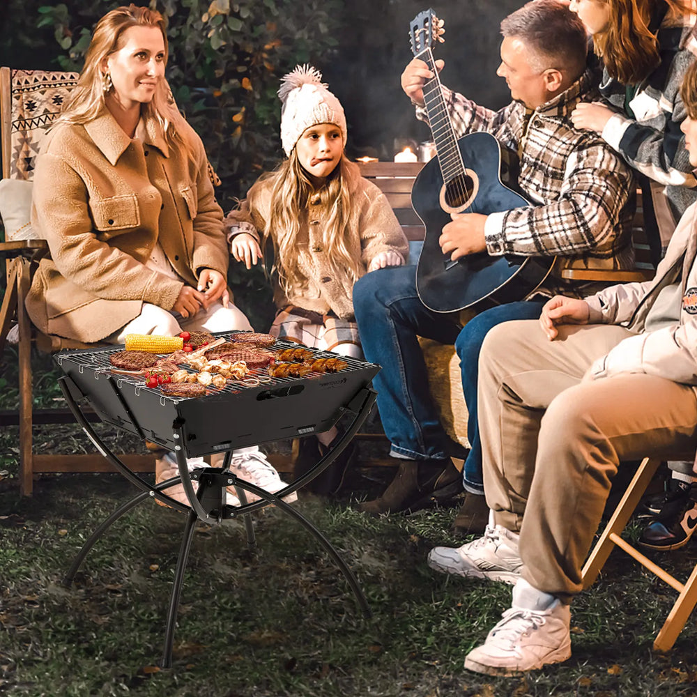 3-in-1 Camping Campfire Grill with Stainless Steel Grills Carrying Bag & Gloves-Black