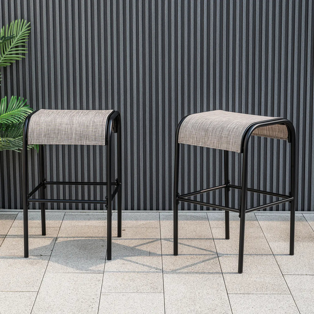 Set of 2/4 Patio Metal Bar Stools with Curved Fabric Seat-Set of 2
