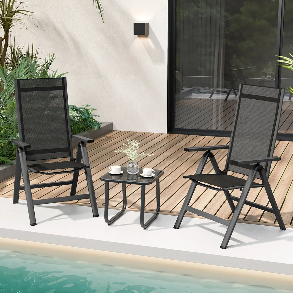 Patio Folding Lightweight Dining Chairs with 7-Position Adjustable High Backrest-Black