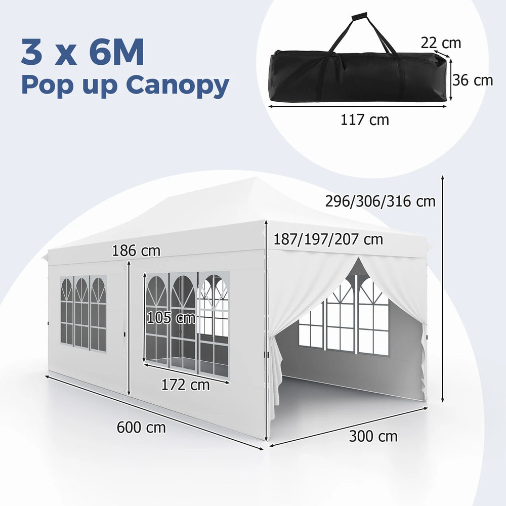 10 x 20 FT Pop up Canopy with 6 Sidewalls and Windows and Carrying Bag for Party Wedding Picnic-White