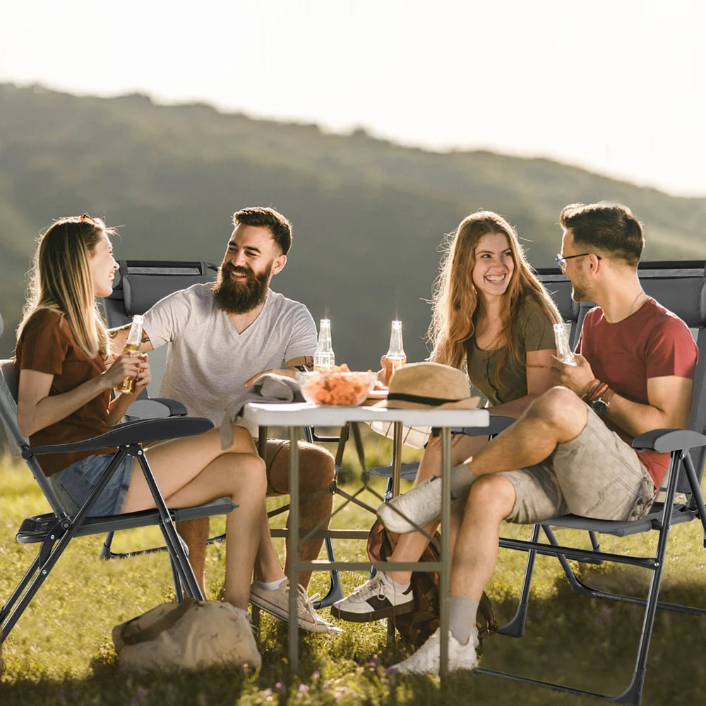 Patio Folding Chairs Set of 2 with Wide Armrests and 7-Level Backrest for Camping Backyard Garden-Grey