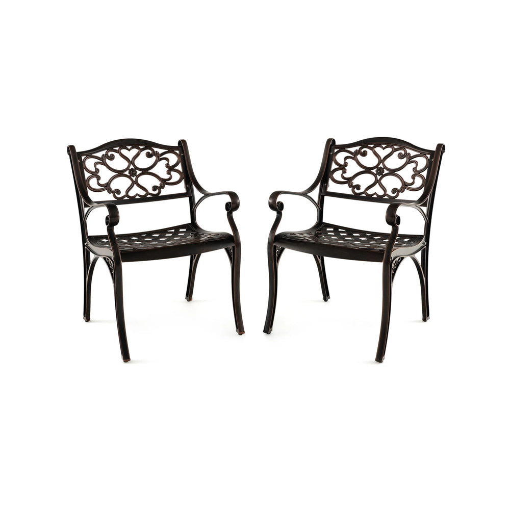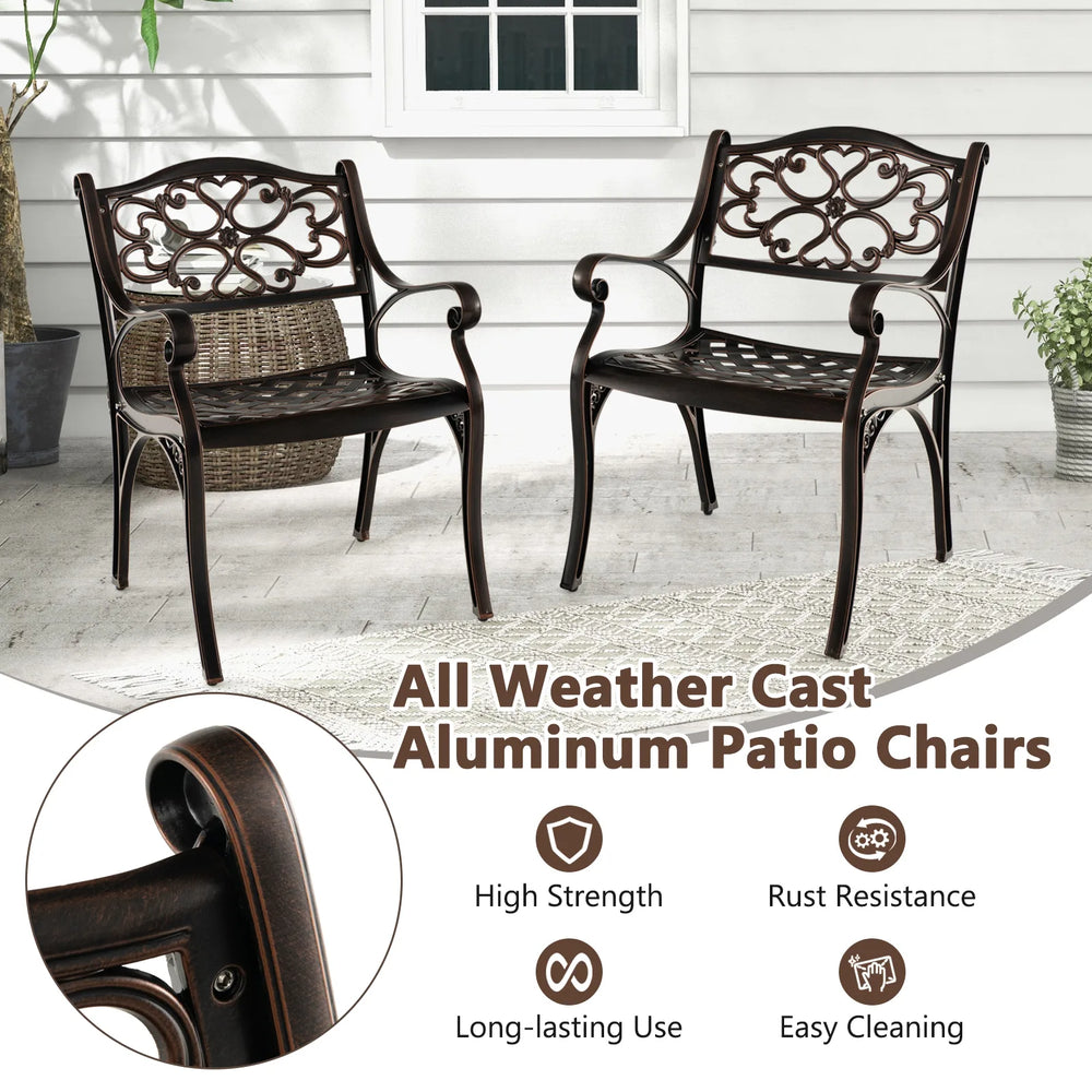 Cast Aluminum Dining Chairs Set of 2 with Patio Chairs Armrests Flower Pattern-Bronze