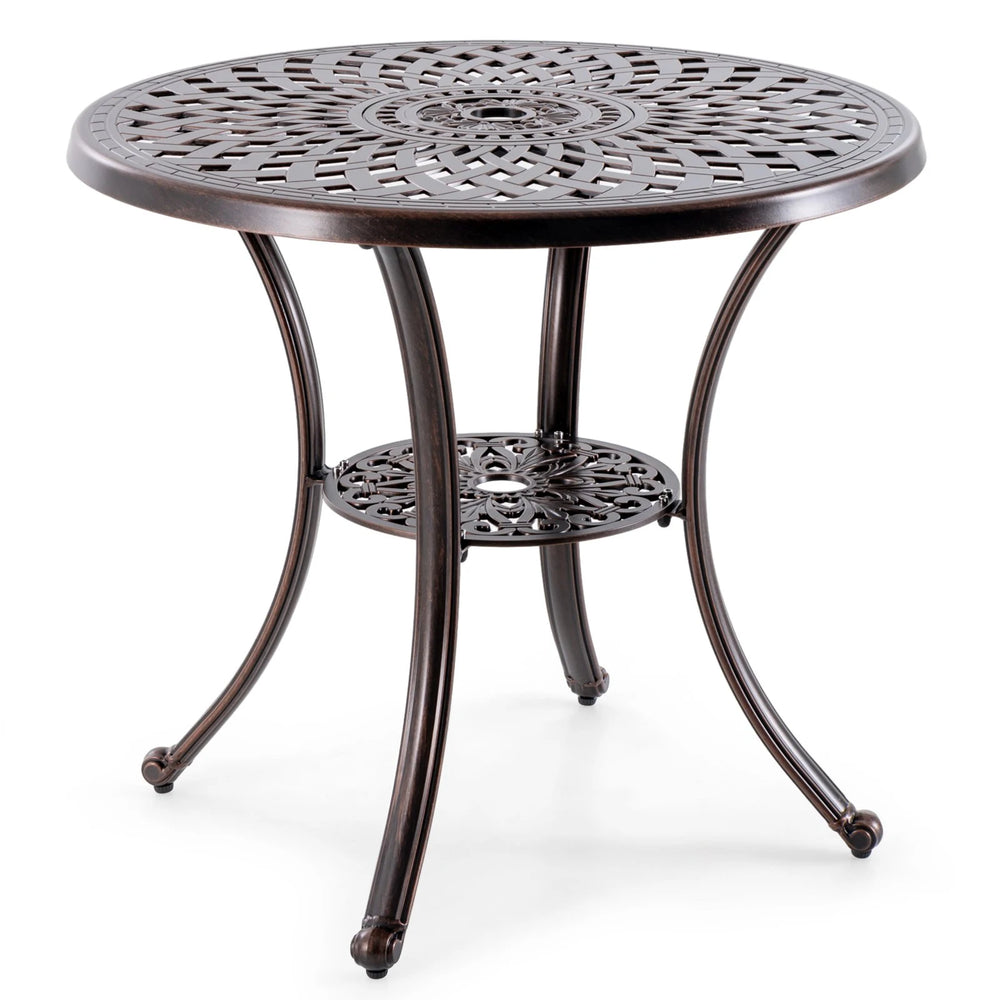 Patio Cast Aluminum Table 31 Inch Diameter Round Table with Umbrella Hole-Copper