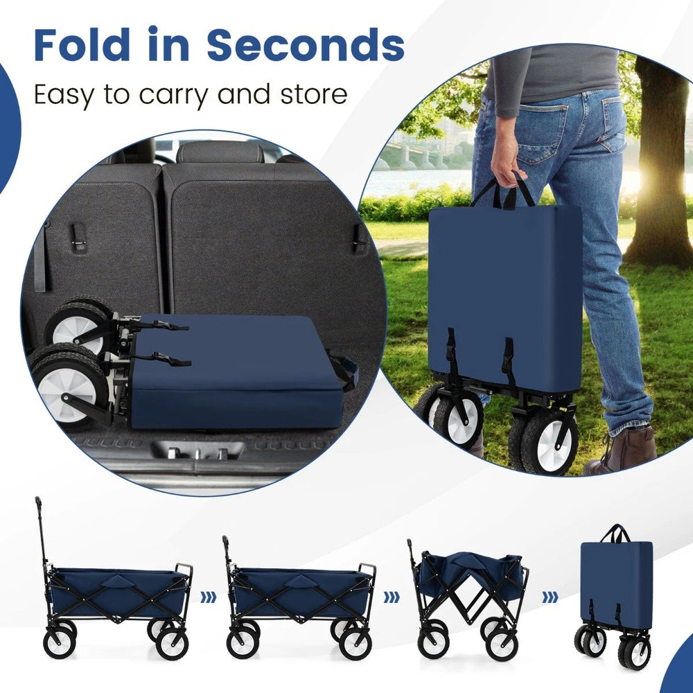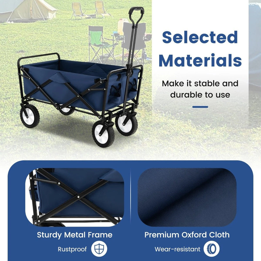 eavy Duty Camping Garden Cart with Adjustable Handle and Drink Holders-Navy