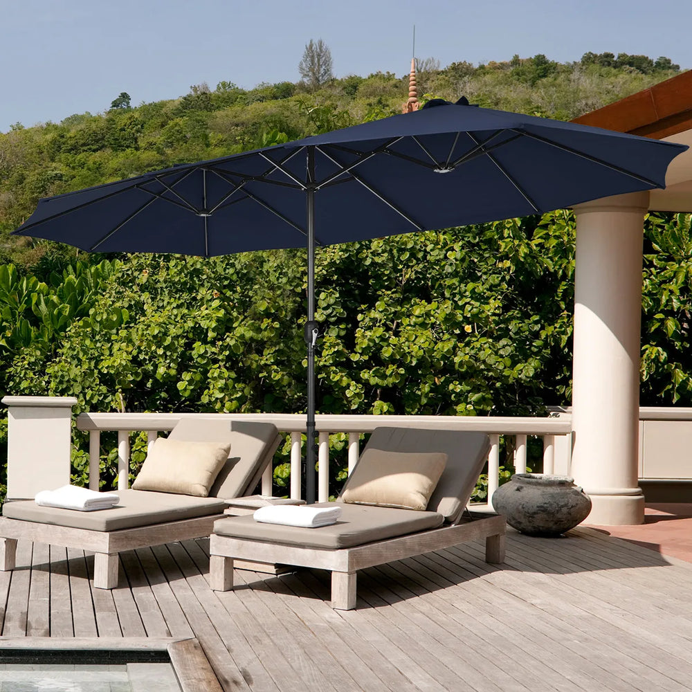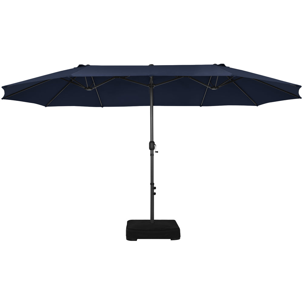 15 Feet Double-Sided Twin Patio Umbrella with Crank and Base-Navy