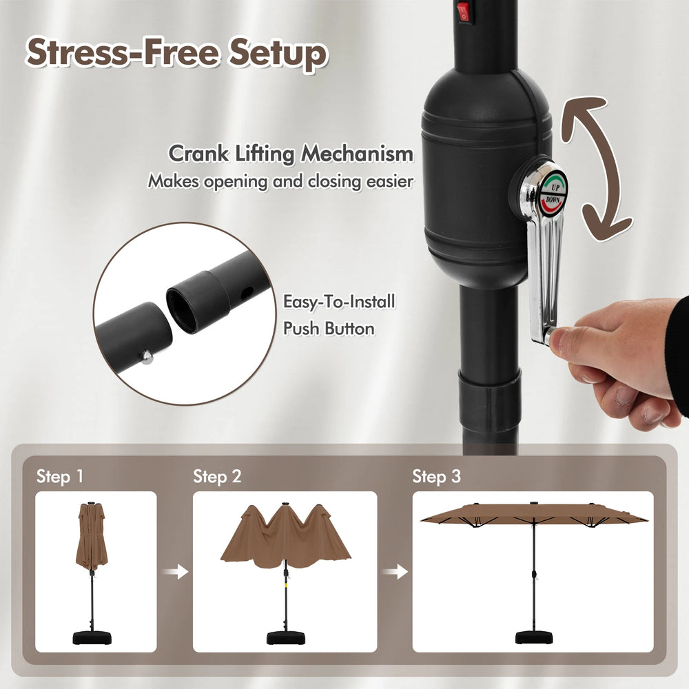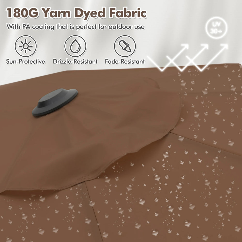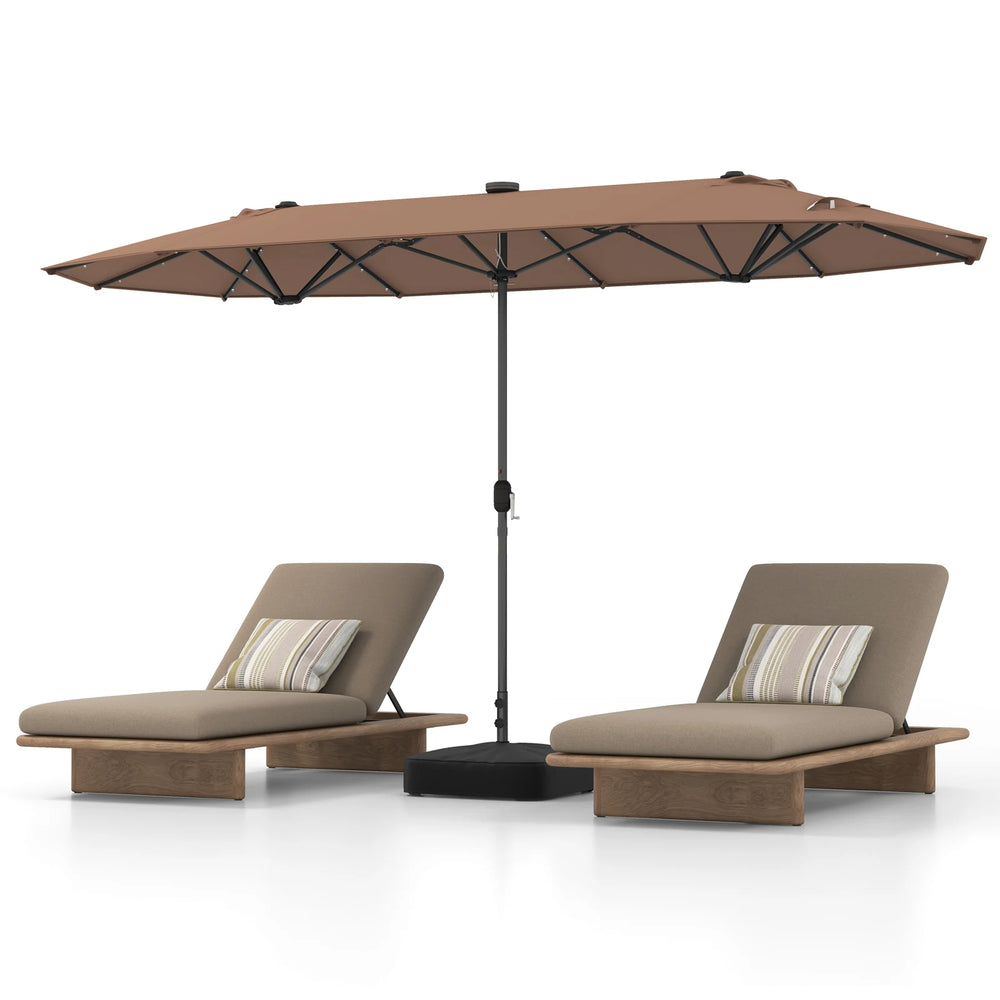 13FT Double-sided Patio Umbrella with Solar Lights for Garden Pool Backyard-Coffee