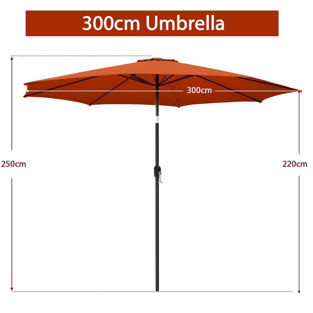 300cm Patio Umbrella with Push Button Tilt Crank Handle and 8 Sturdy Ribs-Orange