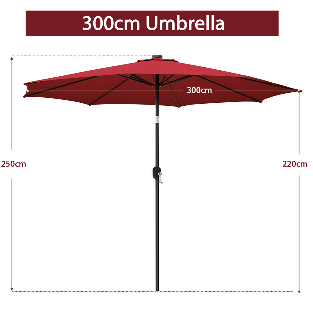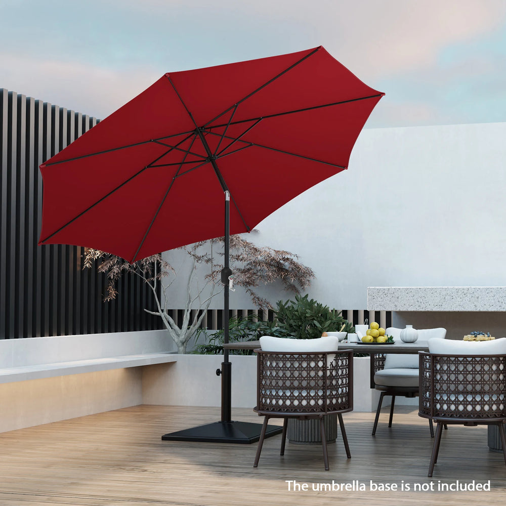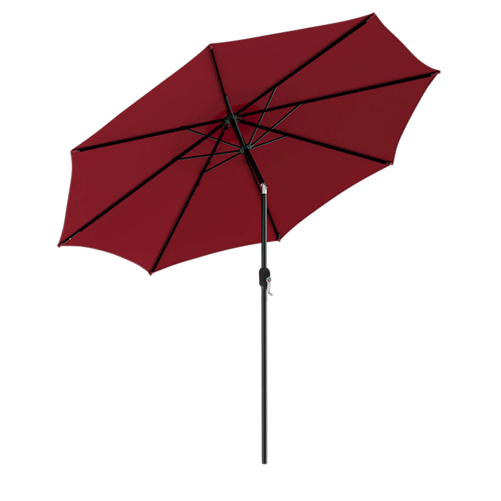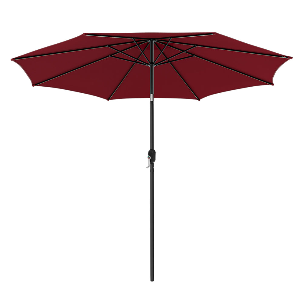 300cm Patio Umbrella with Push Button Tilt Crank Handle and 8 Sturdy Ribs-Wine