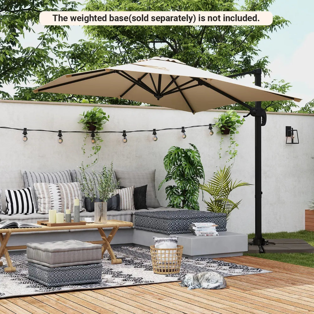 Patio Offset Umbrella with 360 Rotation and 5 Adjustable Tilt 8 Ribs-Beige
