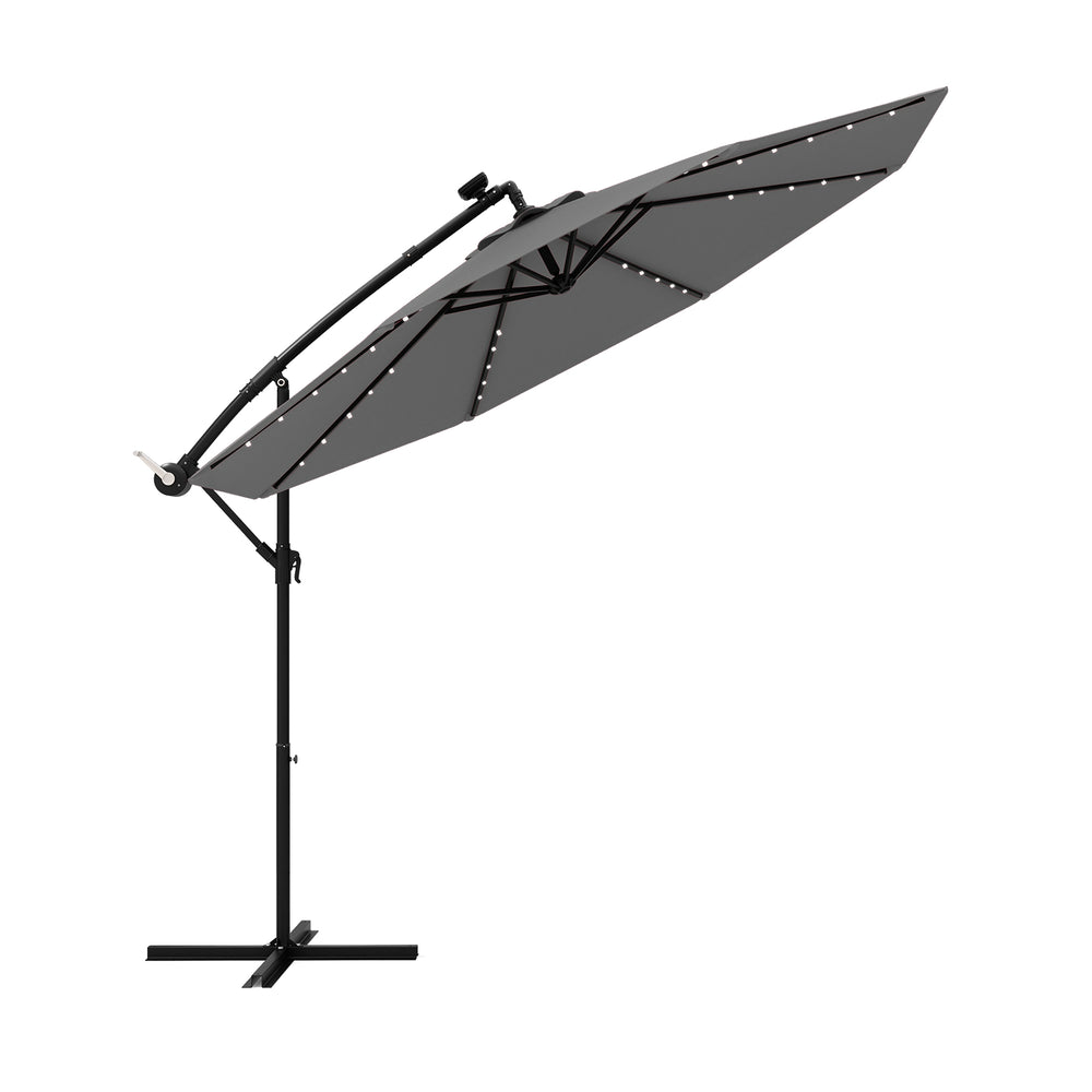 300cm Solar Offset Parasol 40 Lamp Beads Solar Panel Tilt Adjustment Cross Base Crank Gray
