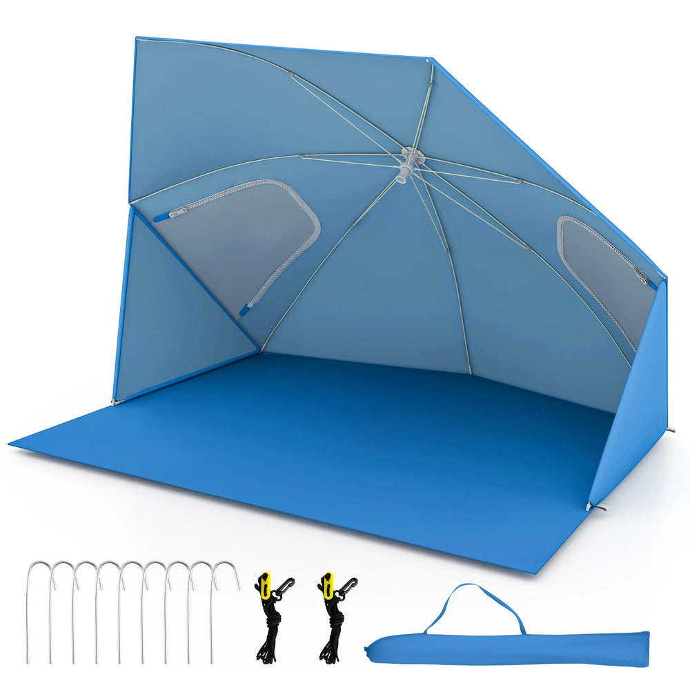 2-In-1 Convertible Beach Tent with Roll-Up Windows for 2-4 People-Blue