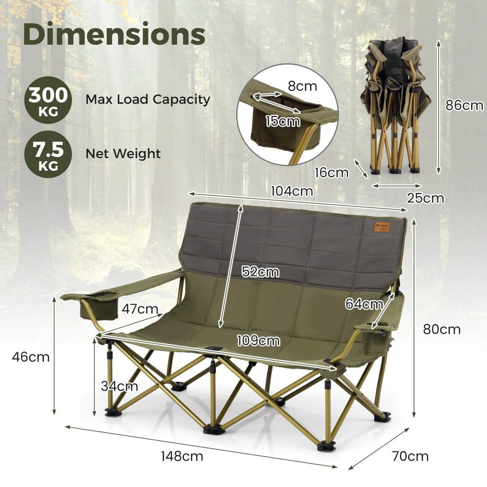 Oversized Camping Chair Folding Loveseat Camping Couch with Cup Holders & Thick Padding-Green