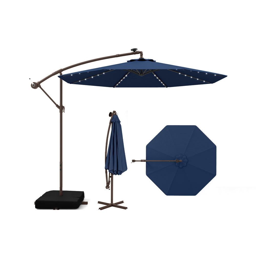 300cm Hanging Offset Umbrella with 40 LED Lights Solar Panel Batteries-Navy