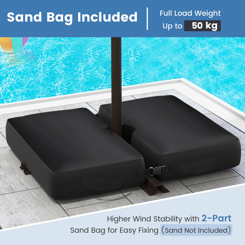 Colour: Navy Material: Polyester Fabric, Metal, Oxford Fabric Item weight: 14 kg Dimension of the Umbrella: 300 cm x 300 cm x 250-280 cm (L x W x H) Diameter of Canopy: 300 cm Package includes: 1 X Umbrella 1 X Sand Bag 1 X Instruction Manual