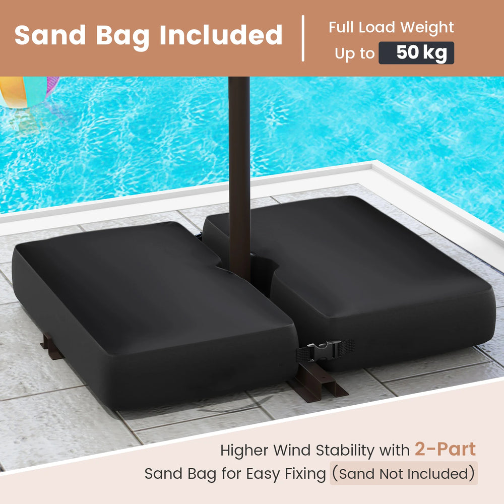 Colour: Beige/Coffee/Navy/Dark Gray Material: Polyester Fabric, Metal, Oxford Fabric Item weight: 14 kg Dimension of the Umbrella: 300 cm x 300 cm x 250-280 cm (L x W x H) Diameter of Canopy: 300 cm Package includes: 1 X Umbrella 1 X Sand Bag 1 X Instruction Manual