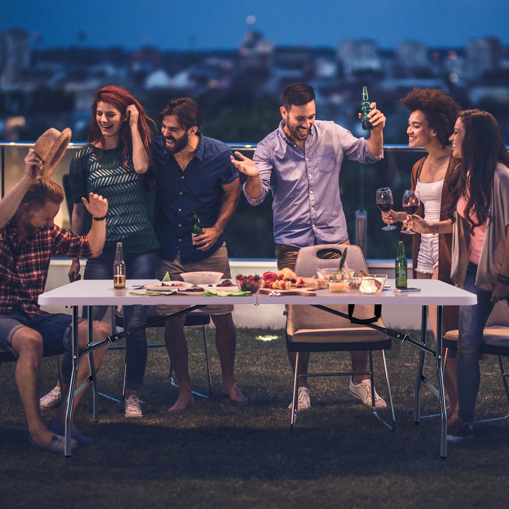 180 CM Folding Plastic Dining Table with Handle Metal Legs and Non-slip Foot Pads