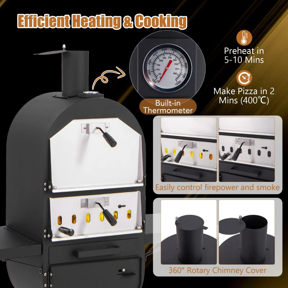 Outdoor Pizza Oven with 600D Oxford Fabric Cover 12 Inch Pizza Stone and Cooking Grill