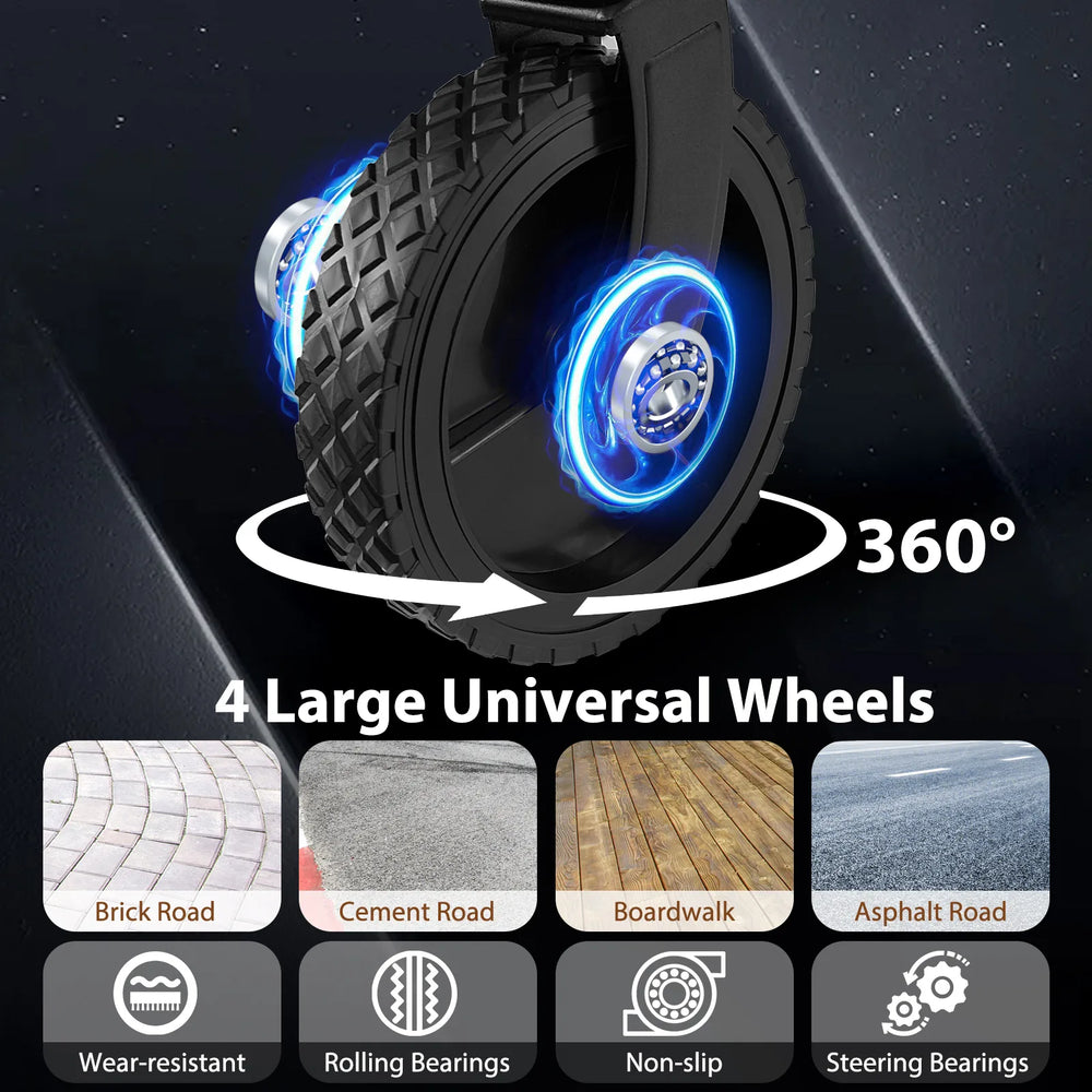Color Coffee Material Metal, Oxford Cloth, PVC, PP Overall Dimension 42" x 22" x 29"-40" Inner Size 38" x 20" x 14" Folding Size 22" x 12" x 31.5" Diameter of Wheel 7" Capacity 45 Gal/170 L Static Load 220 lbs Dynamic Load 132 lbs Net Weight 22 lbs