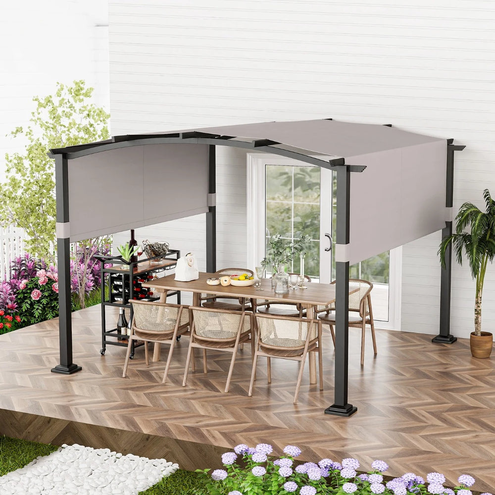 10 x 10 ft Outdoor Pergola Modern Arched Patio Garden Shelter with Retractable Sunshade Canopy-Gray