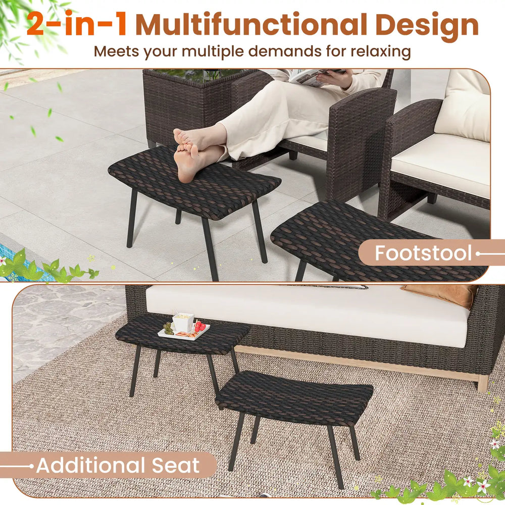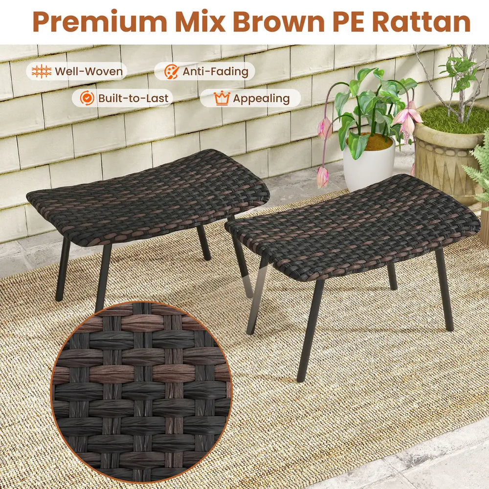 All Weather Outdoor Ottomans Set Patio Footrest Seats Set with Sturdy Metal Legs -Brown
