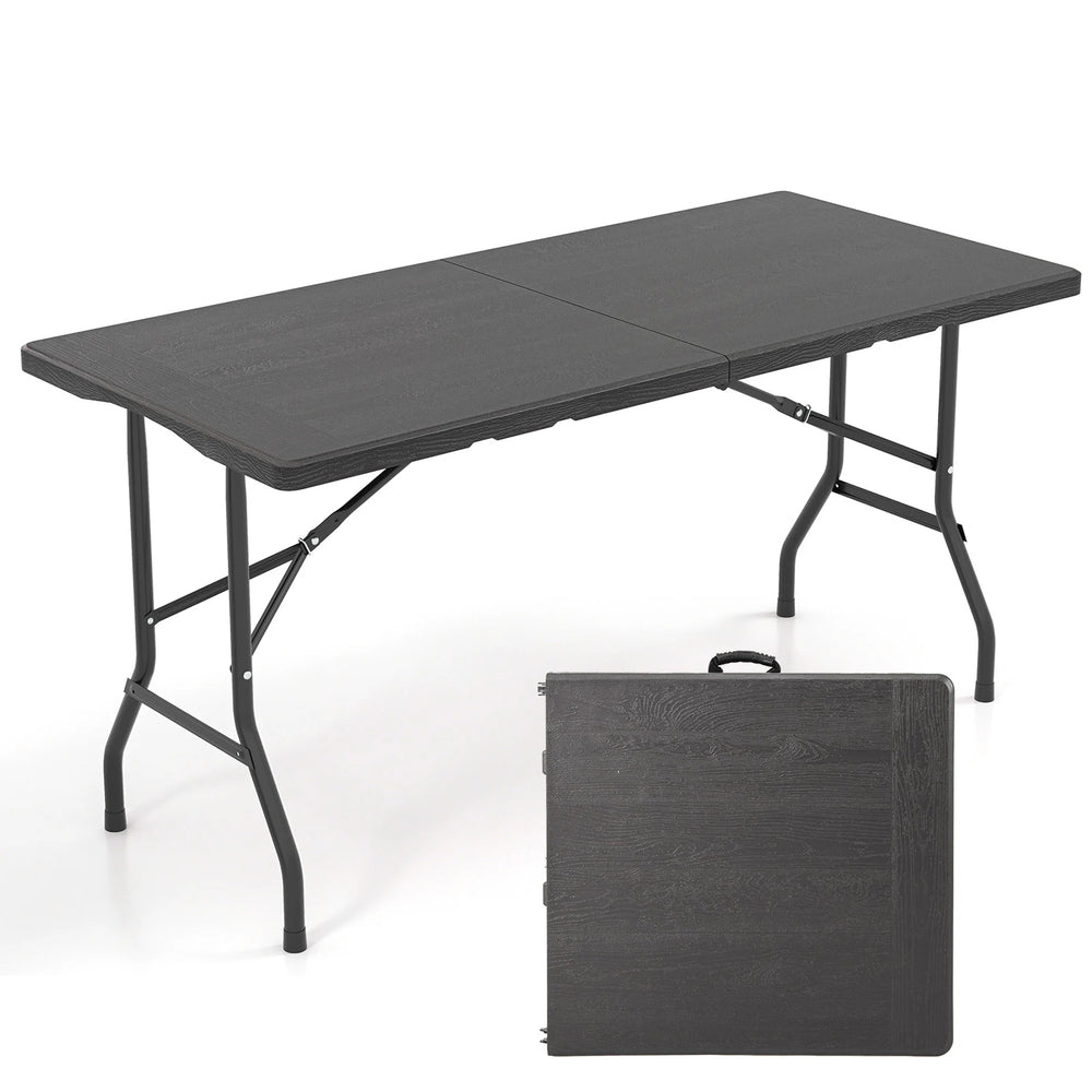 Outdoor Dining Table with Wood Grain HDPE Tabletop and Sturdy Metal Fame-Black