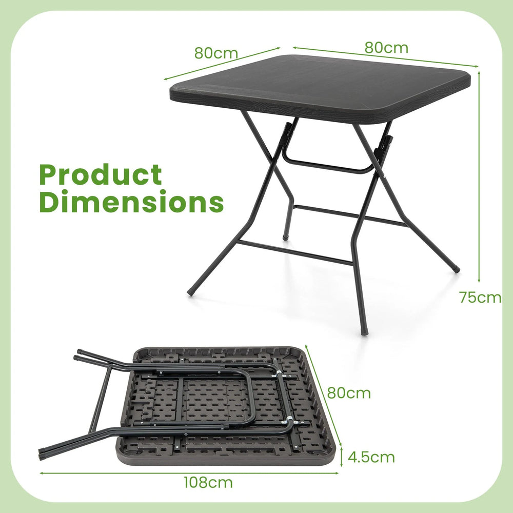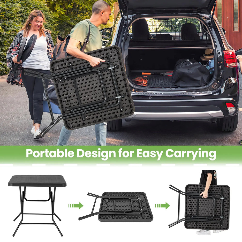 2.6FT Foldable Dining Table with Wood Grain HDPE Tabletop and Non-slip Foot Pads-Black