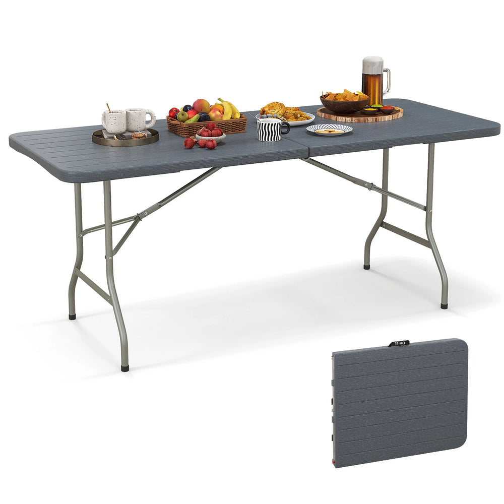 180cm Outdoor Portable Folding Table with Wood Tabletop-Grey