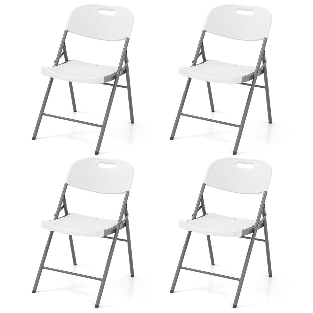 4 Pack Folding Stackable Chairs with Metal Frame and Carrying Handle-White