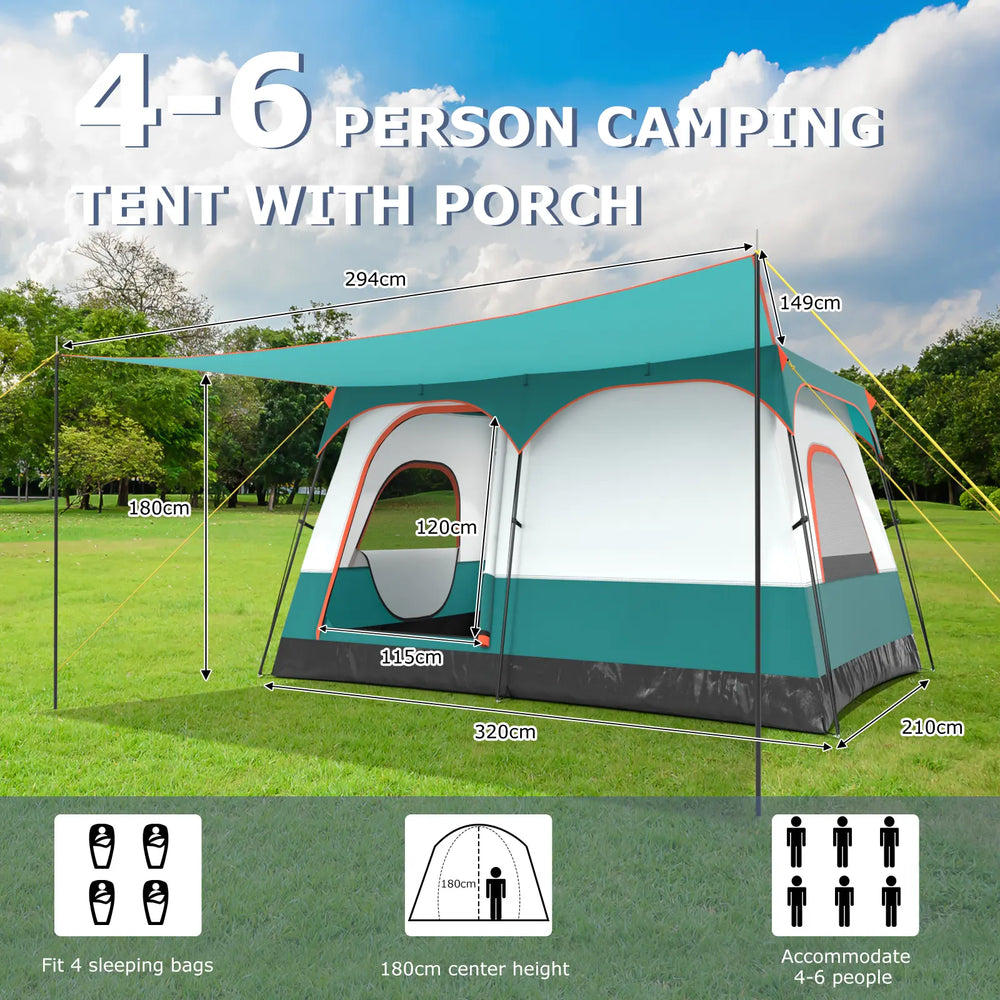 6/8/10-Person Camping Tent with Porch and Rainfly-S