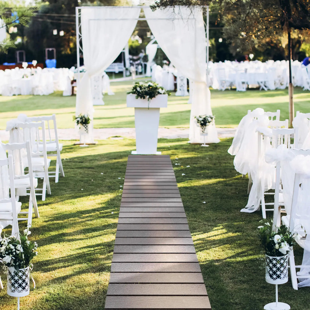 In comparison to garden pathways constructed from poor wood, this is crafted from weather-proof HDPE material known for its exceptional resistance to cracking. The straight pathway features a convenient roll-out design. Featuring non-slip surface, the straight walkway can help you traverse muddy ground without worrying about getting your shoes dirty. When not in use, you can simply roll up the pathway for easy storage. With a carrying handle, you can effortlessly put the folding walkway in any position you want. The garden pathway is equipped with sturdy metal wires that ensure a firm and secure connection between each section. The ABS spacers will protect the wires from being teared and separate each piece. Measuring 242 cm x 43 cm/242 cm x 55 cm(L x W), the roll up boardwalk paver with rustic wood grain provides a practical access to different occasions, such as garden, park or wedding. Whether for morning walks or tending to plants, this pathway has been a game-changer. High-Quality HDPE Material: Crafted from superior HDPE material, the garden walkway is designed to withstand various weather conditions, making it the perfect choice for year-round use in any outdoor setting. Meanwhile, the weather-resistant material makes maintenance a breeze. Firm Wire Connection: Each slat of the outdoor roll up walkway is joined by 2 rows of heavy-duty metal wires and ABS spacers, ensuring resistance to aging and wear. Furthermore, the metal wire connection allows for firm connection, thus ensuring your safety. Practical Garden Pathway: Measuring 242 cm in length and 43/55 cm in width, the decorative pathway with 32 slats provides ample space for tending to plants or taking a leisurely stroll. With the pathway, you can keep the shoes clean and dry from dirt or sand. Foldable Roll-up Design: Thanks to the roll-up design, the decorative walkway can be folded into a compact size when not in use. Also, a built-in carrying handle enables you to rearrange its position with ease. Furthermore, the roll out pathway requires no assembly. Suitable for Various Settings: With realistic wood grain, the 242 cm wide pathway offers a wide range of applications to elevate your outdoor spaces. Whether you're planning a wedding, a beach gathering or creating a charming landscape in your garden, the roll up road floor is an ideal choice.