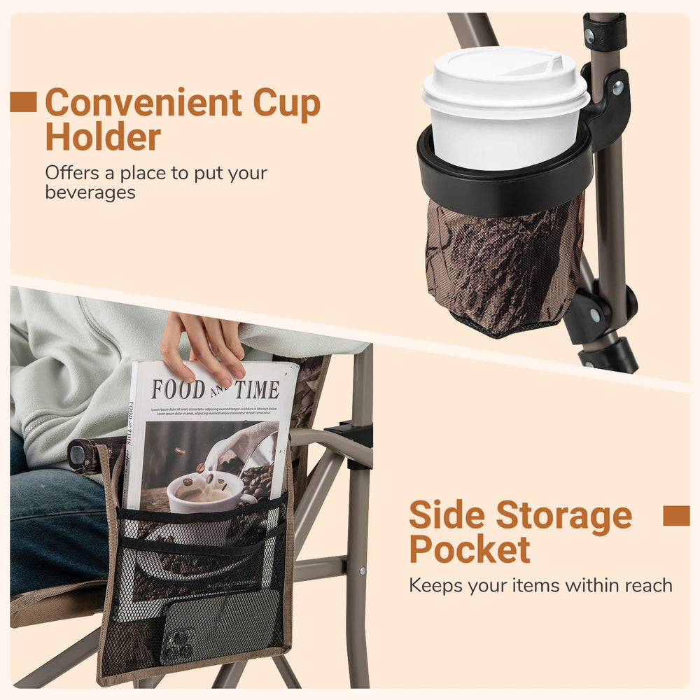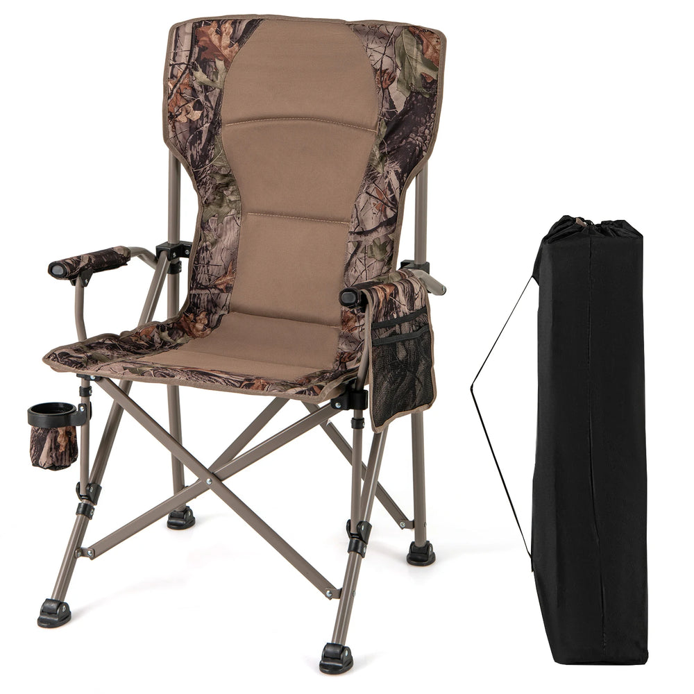 Folding Camping Chair with Armrests and Cup Holder for Fishing Hunting