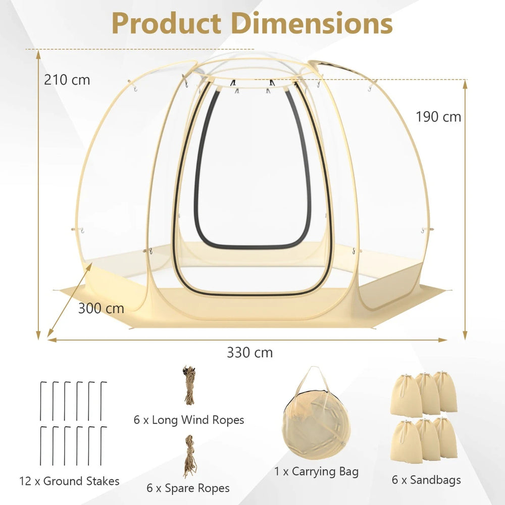 11 x 11 Feet Clear Dome Pop up Bubble Tent with Carrying Bag for 6-10 People-Beige