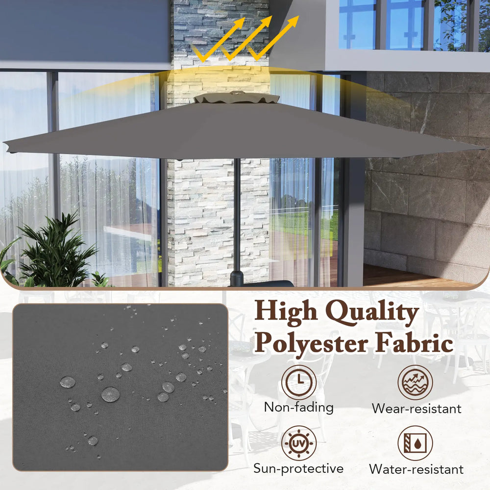 Transform your outdoor space with this impressive 360 cm patio umbrella, a sturdy and stylish addition to any residential and commercial setting. Designed for effortless operation, it includes a 2-section pole that connects with a convenient push button connector, complemented by a hassle-free crank handle for easy opening and closure. The robust frame is supported by 8 heavy-duty ribs and reliable metal poles, ensuring the umbrella stands firm against breezy conditions. The air vent on the top further enhances overall stability while promoting ventilation. Besides, the canopy itself is crafted of selected 180gsm polyester fabric, offering superior durability and protection against harsh sunlight and light rains. Whether relaxing with family on the patio, hosting BBQ parties in the garden, or creating a shaded retreat by the pool, this market umbrella can be the perfect choice! Bullet Point:Crank Handle for Easy Setup: This patio umbrella adopts a convenient crank handle, making it effortless and hassle-free to set up and take down. And when not in use, the umbrella can be detached into 2 sections for space-saving storage. Sturdy and Reliable Structure: The table umbrella is constructed from rustproof powder-coated metal tubes, reinforced with 8 heavy-duty ribs, offering enhanced durability and support against the elements, perfect for breezy environments. Premium Material: The canopy is crafted of premium polyester fabric, which is sun-protection, water-repellent, and tear-resistant, designed to handle the elements. And in severe weather, please close your umbrella to prolong its life. Enhanced Ventilation and Stability: Designed with an air vent at the top, this umbrella maintains air circulation, promotes heat dissipation, while reducing wind pressure. This thoughtful addition aids in providing extra stability and comfort. Versatile Use: With a generous size of 360 cm and a 48.5 mm diameter umbrella pole, this patio umbrella is perfect for pairing with outdoor dining tables (Note: Require a weighted base (not included)). It can be a perfect shading solution for various settings, such as garden parties, poolside relaxation, commercial places, etc.