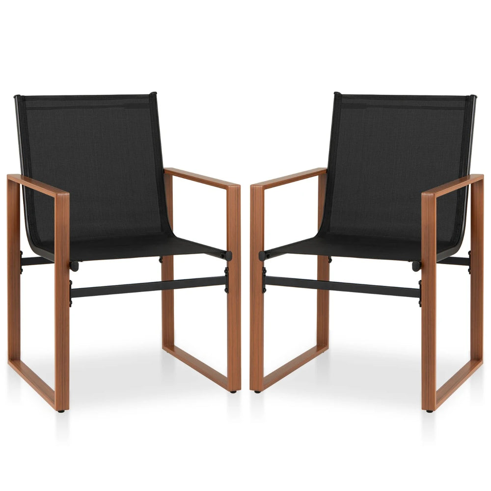 Outdoor Dining Chairs with Breathable Seat and Backrest Set of 2-Black
