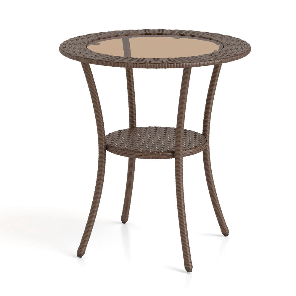 Outdoor Round Dining Table Patio Bistro Table with Tempered Glass Tabletop